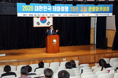 26일 고창군에 따르면 전날(25일) 오후 고창청소년수련관 청소년극장에서 ‘대한민국 테마여행 10선 사업’의 일환으로 고창군이 주최하고 전주대학교 산학협력단이 주관하는 ‘문화관광아카데미’를 열었다.