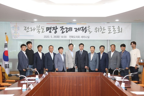 전북도의회 농산업경제위원회(위원장 강용구)는 26일, 의회 세미나실에서 전라북도명장 조례 제정을 위한 토론회를 개최하고 의견 수렴에 나섰다.