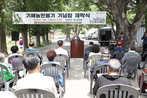 정읍시가 입암면 왕심마을에 ‘기해농민봉기 기념 조형물’을 설치하고 27일 제막식을 가졌다.