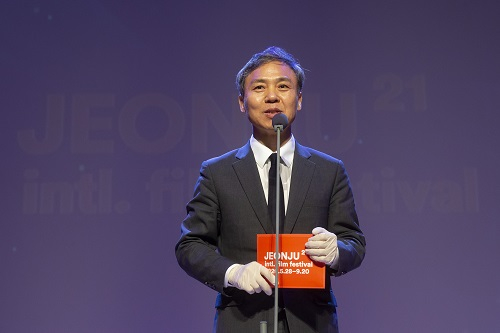 코로나19 확산 방지에 동참하고자 심사 상영, 온라인 상영, 장기 상영회로 진행되는 제21회 전주국제영화제는 배우 김규리와 이승준의 사회로 작지만 알찬 온라인 개막식을 치뤘다. 김승수 조직위원장과 이준동 집행위원장을 비롯해 소수의 영화제 게스트와 심사위원, 경쟁작 감독 등 약 90여 명이 참여해 전주국제영화제의 도전적인 행보를 응원했다.