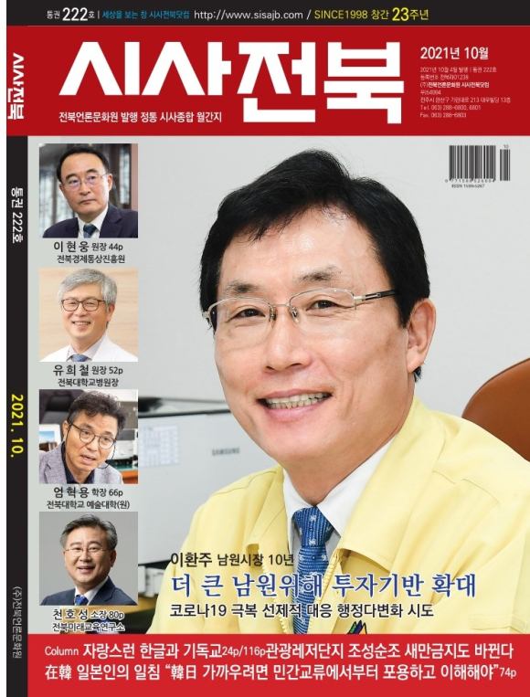 전북지역 유일 시사종합월간지 '시사전북'이 창간 23주년을 맞아 10월호(통권222호)를 발매했다.