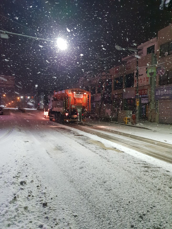 이와 함께 군은 제설자재로 소금 310톤, 염화칼슘 80톤, 제설용액 120톤, 모래 100㎥를 비치했으며 15톤 덤프(7대), 1톤 트럭(2대), 굴삭기(1대), 모래살포기(5대) 등의 장비를 구비해 상시 대기 중이다.