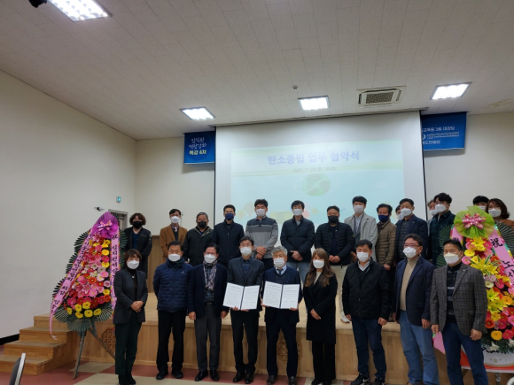 전주시와 (사)전주시중소기업인연합회(회장 임동욱)는 26일 한국탄소융합기술원 기술교육동 3층 대강당에서 ‘2050 탄소중립’ 실현을 위한 업무협약을 체결했다.
