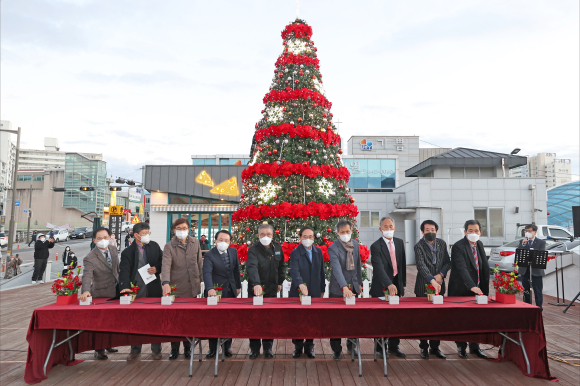 임실 읍내 한복판에 거대한 성탄트리의 불빛이 지역 전역을 비추면서 코로나19로 지친 주민들을 크게 위로하고 있다.
