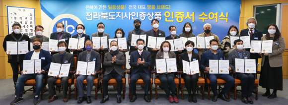 전북도는 지역 대표 상품 및 전국 명품 브랜드로 육성하기 위해 신규로 선정한 ‘전라북도지사인증상품’ 21개에 인증서를 수여했다고 2일 밝혔다.