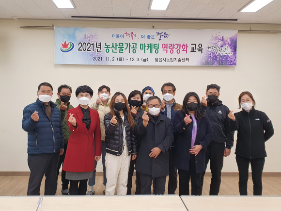 정읍시농업기술센터는 3일 지역 농산물을 활용한 가공상품 마케팅 역량 강화 교육 수료식을 가졌다.