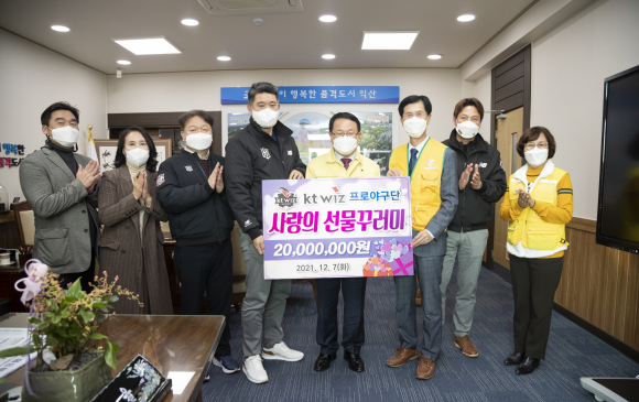 KT WIZ 프로야구단이 올해에도 익산지역의 어려운 이웃과 야구인들을 위해 사용해달라며 나눔 물품을 전달했다.