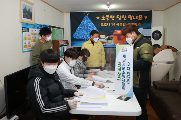 진안군이 전라북도에서 최초로 3차 재난기본소득지원금을 지원하는 가운데 지난 6일부터 찾아가는 행정서비스(마을방문)를 통해 지급을 시작했다.