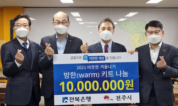 전북은행은 코로나19로 기부 문화가 상대적으로 위축된 상황에서 취약계층이 혹한의 추위를 따뜻하게 보낼 수 있도록 지원하기 위한 취지라고 설명했다.