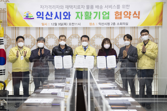 시는 9일 좋은세상만들기(대표 소선호), 주식회사 모둠(대표 오주영) 등 2곳과 자활기업과 업무 협약을 체결하고 자가격리자와 재택치료자를 대상으로 물품 배송 전문서비스를 시행한다고 밝혔다.