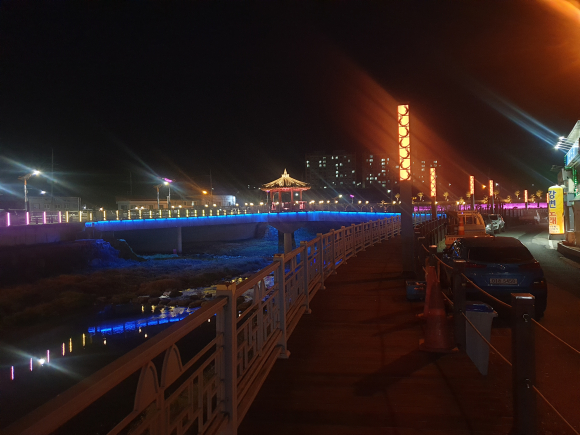 금년도에는 시설비 10억원(특별교부세6억 군비4억)을 투입해 쌍다리에서 학천교까지 1㎞의 구간에 경관조명을 설치했다.