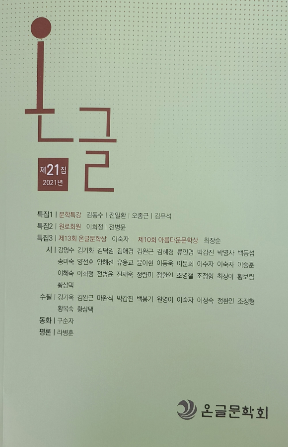 한편, 김동수 명예교수가 주관, 지도하고 있는 문학동인 <온글> 제21집(2021년호)도 출간됐다. 온글문학회장은 김덕임 시인이 맡고 있다.