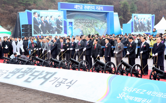 새만금 관광단지의 첫 사업지역인 '새만금 게이트웨이(GateWay)관광단지 프로젝트' 기공식이 10일 오전 11시 전북 부안군 변산면 새만금 1호 방조제에서 열렸다.