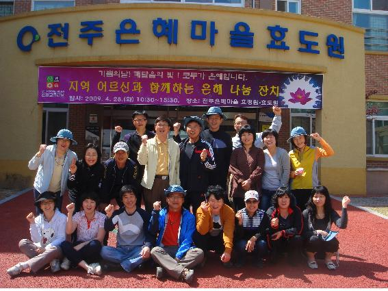 “올 3월에 창단식을 가진 얼마 되지 않는 봉사단체입니다. 인원은 총 52명으로 매월 세 번째 주일 토요일에 지역 노인요양시설을 방문해 말벗해드리기, 식사대접, 어르신 마사지, 복지시설주변 관리하기 등을 하고 있습니다. 봉사 때마다 회원 모두가 참여하지는 못하지만 매월 30명 이상이 봉사활동을 하고 있습니다. 회원 연령은 30대 중반부터 50대까지 다양하며 남성보다 여성이 많습니다. 아무래도 어르신들 모시는 것은 여성분들이 다정하게 잘하지요. 남성분들은 주로 시설관리를 하거나 주변 청소를 도와줍니다.”