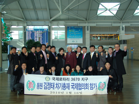 국제로타리3670지구(전북지역) 2010-2011 김정태 총재가 1월16일부터 7박8일 동안의 일정으로 미국 샌디에이고에서 개최되는 국제협의회(International Assembly) 참석차 출국했다.