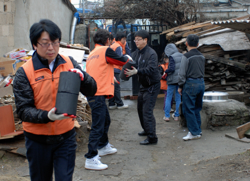 | ↑↑ 삼화스포츠(김신정 대표)는 연탄을 후원함은 물론 직접 배달하였다. |