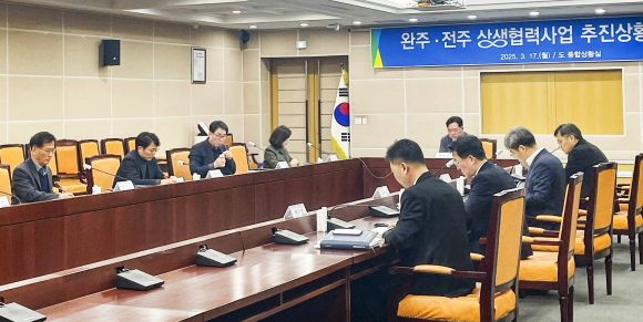전북특별자치도는 17일 도청 4층 종합상황실에서 최병관 행정부지사 주재로 ‘완주·전주 상생협력사업 추진 상황 보고회’를 가졌다고 밝혔다.