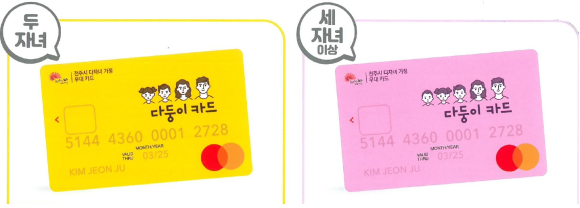 ‘다둥이카드’란 전주시에 주민등록된 2자녀 이상 가정 중 1명 이상이 18세 이하인 다자녀 가정에 발급되는 카드로, 시는 현재 카드 소지자에게 △경기전, 전주자연생태관 관람료 무료 △동물원 입장료 무료 △전주시 공영(부설)주차장 50% 감면 △전주시 체육시설(별도규정시설 제외)의 사용료 감면(2자녀 20%, 3자녀 이상 50%) 등의 혜택을 제공하고 있다.