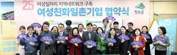 장수군이 전북광역여성새로일하기센터(원장 전정희)와 함께 지역 여성들의 일자리 창출을 위해 25일 장수군청 2층 회의실에서 지역 내 7개 기업과 ‘여성친화 일촌기업’ 업무협약을 체결했다.