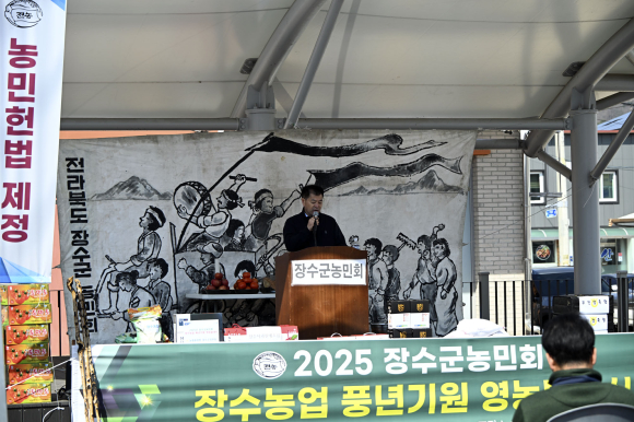 장수군농민회(회장 최영호)가 주최한 ‘2025년 풍년기원 영농발대식’이 1일 장수시장 야외무대에서 성황리에 개최됐다.