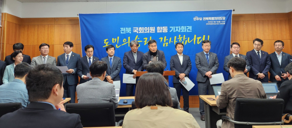 더불어민주당 소속 전북 출신 국회의원들은 이날 오전 10시 전북자치도의회 브리핑룸에서 가진 기자회견에서 "이제는 지역차별과 소외를 바로잡고 전북의 정당한 권리를 회복하는데 의정활동에 집중하겠다"고 밝혔다.