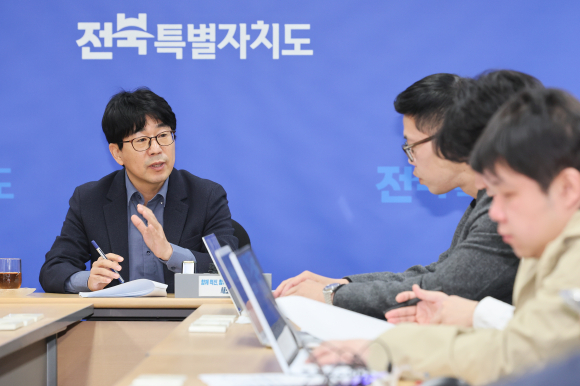 | ↑↑ 김종훈 전북자치도 경제부지사가 4월 16일 브리핑하고 있다. |