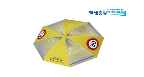 교통안전 우산은 자동차 불빛을 반사하는 야광 띠와 어린이 보호구역 제한속도 30km가 표시, 우천 또는 야간에 보행하는 어린이의 교통사고를 예방하는 효과가 크다.