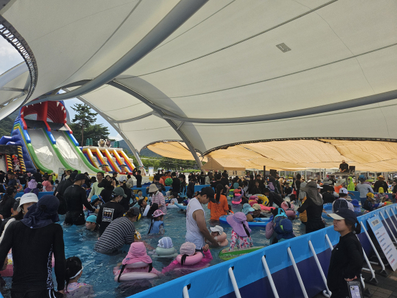 행사장에는 11m 높이의 대형 워터슬라이드와 유아·어린이용 소형 슬라이드 2개를 설치해 남녀노소 누구나 즐길 수 있는 물놀이 공간을 제공했다.