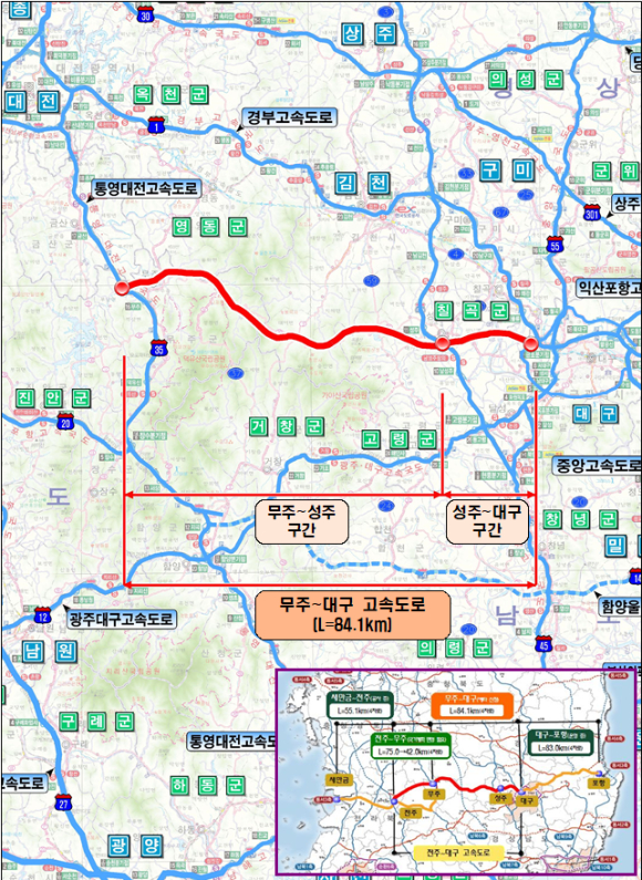 이 사업은 2022년 2월 「제2차 고속도로 건설계획(’21~‘25)」에 무주~성주 구간(일반사업)과 성주~대구 구간(중점사업)으로 각각 반영돼 추진됐으나, 낮은 교통수요 등으로 타당성 확보에 어려움을 겪어왔다.