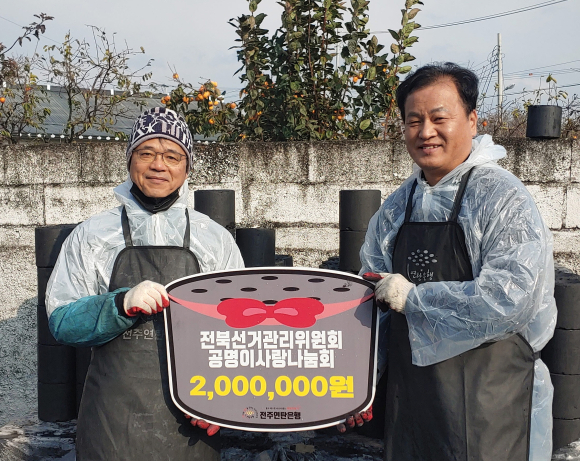 전북특별자치도선거관리위원회 봉사단체인 ‘공명이사랑나눔회’는 11월 27일 전주시 덕진구 팔복동 일대의 에너지 취약 가정에 연탄 2,200장을 기부했다.