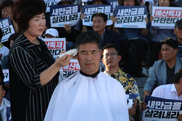 | ↑↑ 전북 새만금 예산 복원 삭발투쟁 |