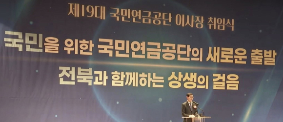 국민연금공단(이사장 김성주)은 12월 17일 오후3시 전주혁신도시 소재 공단 본부 온누리홀에서 김성주 국민연금공단 이사장 취임식을 개최했다.