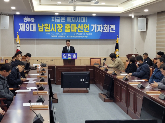 남원복지경제연대 김원종 대표(박사)가 2026년 6.3지방선거에 남원시장 선거 출마를 선언했다.