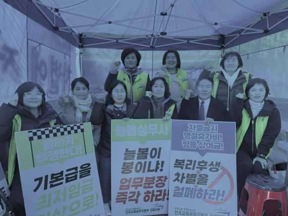 노 대표는 “이재명 정부가 약속한 ‘학교급식 종합대책’과 ‘저임금·무임금 문제 해결’이 공허한 선언에 그쳐서는 안 된다. 학교비정규직 노동자들의 임금인상 교섭은 결코 올해를 넘겨서는 안 된다.”며, 정부와 교육당국은 학교비정규직 노동자들이 가족과 함께 희망의 2026년을 맞이할 수 있도록, 연내 책임 있는 교섭과 구체적인 대책을 마련할 것을 다시 한 번 강력히 촉구했다.