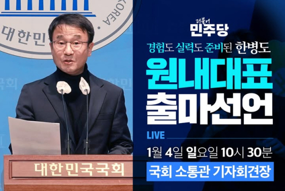 한 의원은 1월 4일 오전 10시 30분 국회 소통관 기자회견장에서 "경험도 실력도 준비된 한병도, 이재명 정부의 성공과 지방선거 승리를 위해 원내대표에 출마한다"면서, 원내대표 출마 배경으로 4가지를 강조했다.