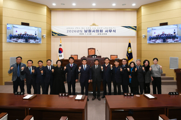 남원시의회(의장 김영태)가 1월 2일 새해를 맞아 남원시의회 2026년도 시무식을 개최하며 새해 의정활동의 힘찬 출발을 알렸다.