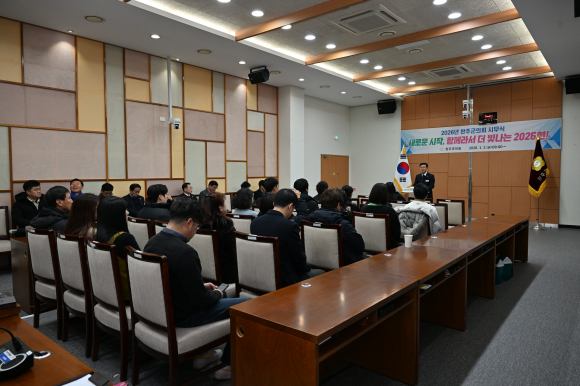 완주군의회(의장 유의식)는 1월 2일, 의회 문화강좌실에서 2026년 시무식을 열고 새해 의정활동의 힘찬 출발을 알렸다.