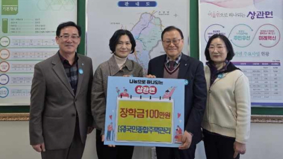 (유)국민종합주택관리가 완주군 상관면에 장학금 100만 원을 기탁했다.