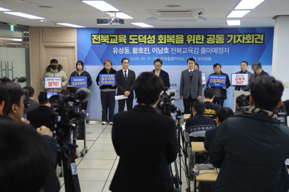 이날 3인의 공동기자회견에 따라 전북교육감선거는, 2월 3일 예비후보 등록을 앞두고 한 치 앞을 내다볼 수 없는 혼돈 속으로 빠져드는 양상으로 흘러가고 있다.