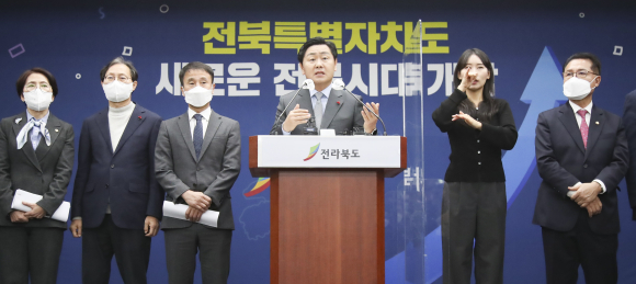 김관영 도지사는 지난 1월 5일 전북도청 기자회견장에서 신년 기자회견을 열고, 2026년 도정 운영 방향으로 ‘도전경성의 처음과 끝, 도민과 함께’라는 회견문을 발표했다.먼저 김 지사는 2025년 성과애 대해 “전북을 5극 3특 핵심 무대 위로 세우고, 미래먹거리 확보에 집중한 한 해였다”고 밝혔다.