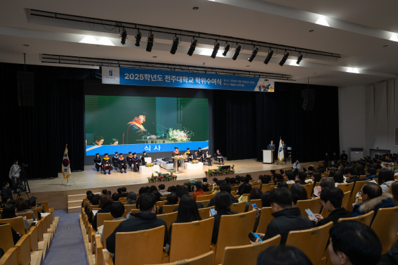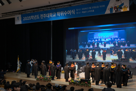 전주대학교(총장 류두현)는 20일 오전 10시, 교내 예술관 JJ아트홀에서 졸업생과 가족, 내외빈이 참석한 가운데 ‘2025학년도 학위수여식’을 성황리에 개최했다고 밝혔다.