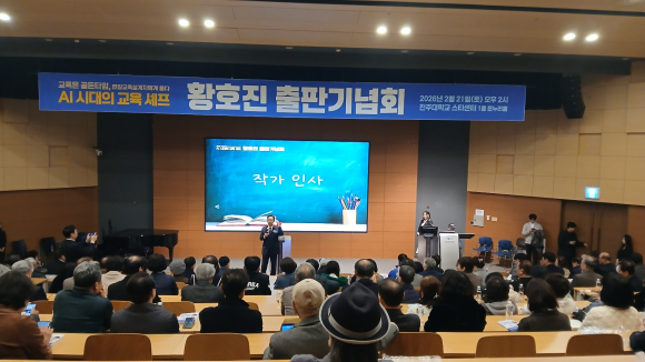 황호진 전북교육감 예비후보의 ‘AI시대의 교육 세프’ 출판기념회가 2월 21일 오후 전주대학교 스타센터에서 온누리홀과 입구에 가득찬 참석자들과 함께 성황리에 열렸다.
