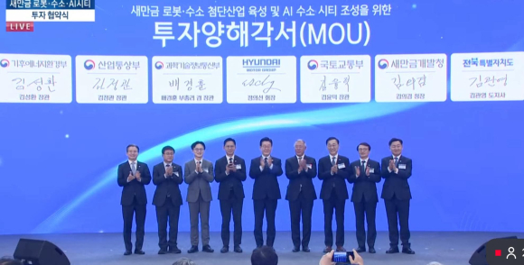 전북자치도는 지난 2월 27일 군산 새만금컨벤션센터(GSCO)에서 현대자동차그룹, 정부 5개 부처와 함께 '새만금 로봇·수소 첨단산업 육성 및 수소AI 도시 조성을 위한 투자협약(MOU)'을 체결했다. 이번 협약은 정부 부처, 광역지자체, 민간기업이 단일 투자 건에 공동 서명한 사례이며, 이는 전국적으로 전례가 드물다.