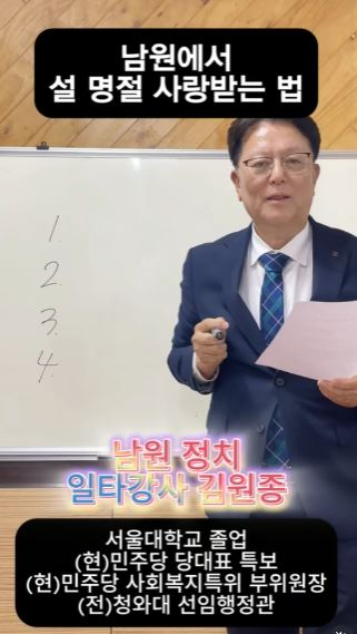 김원종 남원시장 예비후보의 파격적인 SNS 행보가 남원 지역사회에서 큰 화제를 모으고 있다. 자칫 딱딱하게 느껴질 수 있는 지역 현안을 1분 내외의 ‘쇼츠’ 영상으로 제작해 배포하며 시민들로부터 뜨거운 반응을 얻고 있는 것이다.