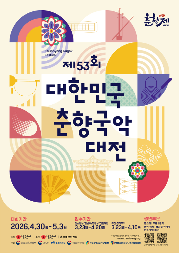 한편, 제53회 춘향국악대전의 상세 접수 일정과 세부 사항은 3월 초 남원시 누리집과 춘향제전위원회 누리집 등을 통해 공지될 예정이다.