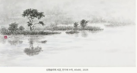 섬진강과 만경강 물줄기 곁에서 피고 지는 작은 꽃과 풀, 그리고 생명이 다시 돌아올 자리를 남겨 둔 고요한 수면 위의 여백을 붓질로 담아냈다.