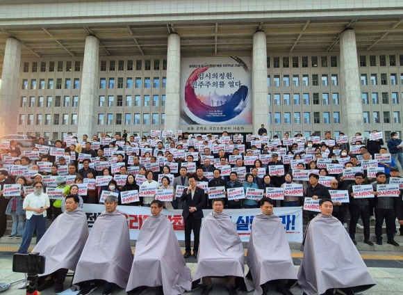 전북특별자치도지사 경선 무효를 선언하고, 민주당 중앙당에 '재감찰'을 주장하고 있는 안호영 국회의원이 국회 본청 앞에서 무기한 단식에 들어간 이틀째인 4월 12일, 그를 지지하는 전북도민들이 삭발을 단행했다.